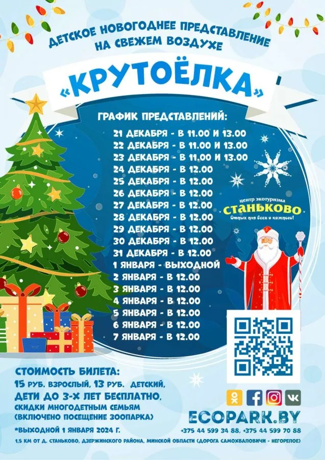 Ждём Вас с 21 декабря 2023 г. по 7 января 2024 г. (выходной 1 января 2024 г.)