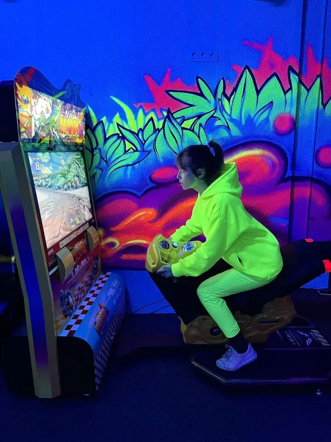 Неоновый праздник для детей всех возрастов с играми, аттракционами и VIP-комнатой с PS5. Поиграйте в мини-гольф, поплавайте в сухом бассейне, погоняйте на мотоциклах и постреляйте из лазерных пистолетов. Веселье и адреналин гарантированы.
