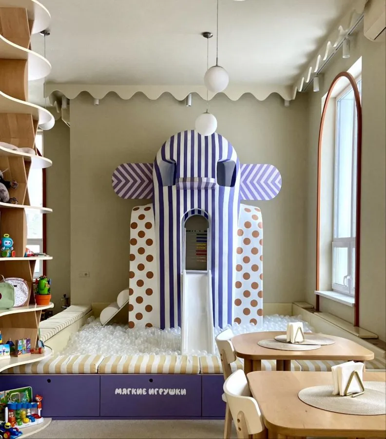 Наше пространство создано с любовью для вас и ваших деток 💛 Здесь они смогут обрести новые весёлые знакомства, оценить большой выбор игрушек и детское меню, разработанное специально для них 🥞