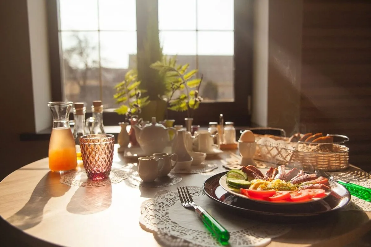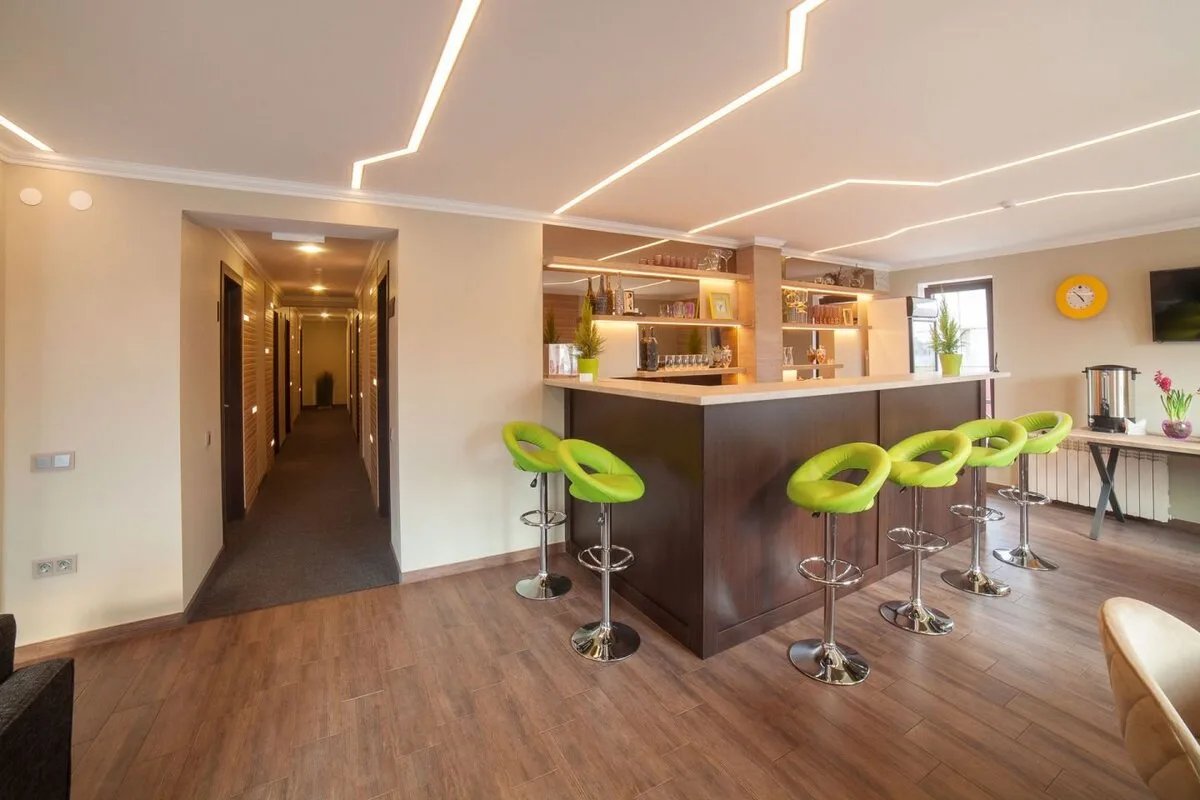 В холле мини-отеля расположена зона для приема пищи. Здесь можно позавтракать и попить чай или кофе. Питьевая вода находится в свободном доступе.