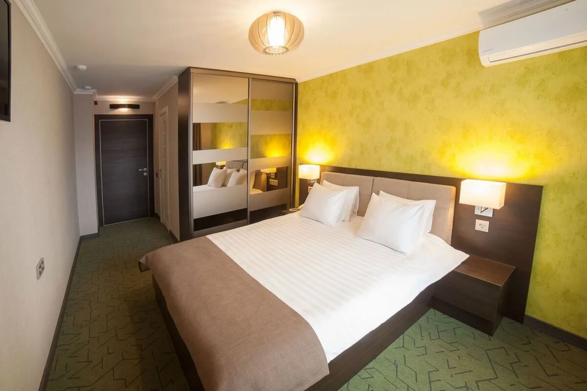 В мини-отеле работает центральное отопление. В каждом номере есть двуспальная кровать размера king-size, просторный шкаф для одежды, установлен кондиционер, телефон, телевизор со спутниковым TV. В ванной комнате есть фен, полотенца и туалетные принадлежности.