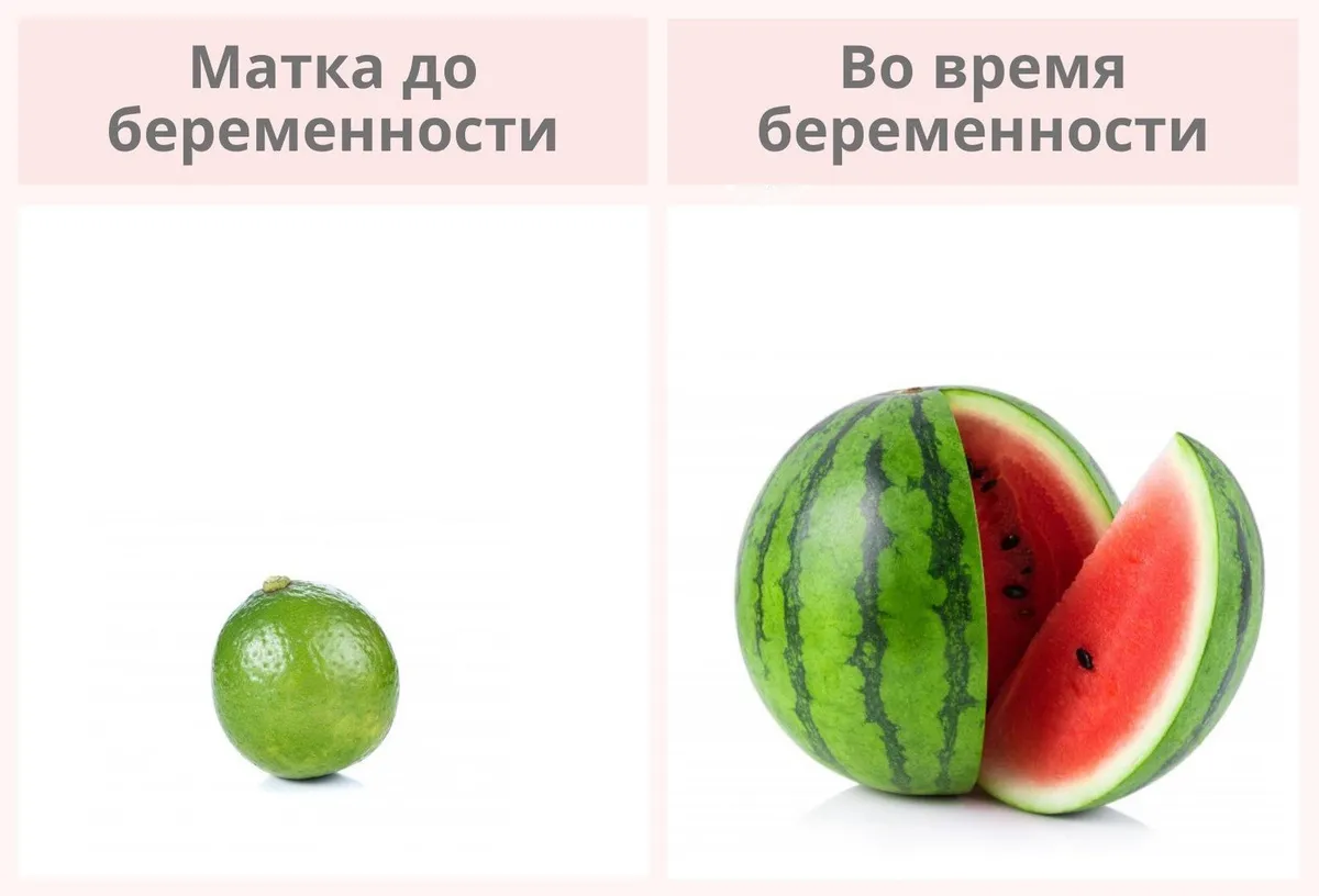 За время беременности матка может увеличиться в 500 раз. Образно до беременности женская матка обычно имеет размер лайма. А к третьему триместру она может быть размером с арбуз.
