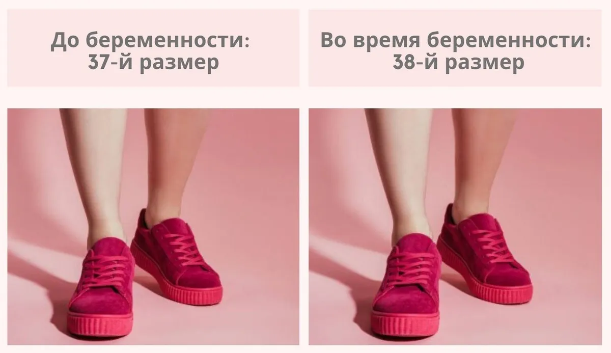 Во время беременности может увеличиться не только объем талии, но и размер ноги. Многие женщины сообщают, что их ноги стали больше на 10 мм.