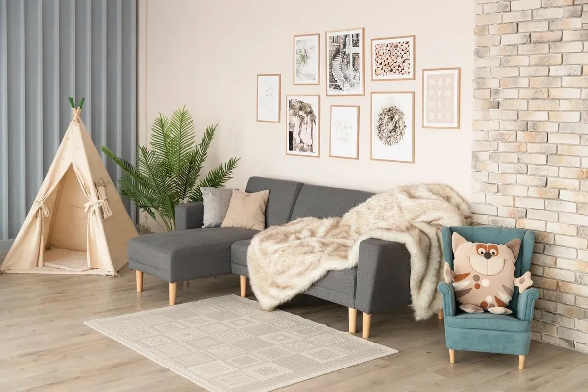 Одним из самых любимых детьми является съемочный зал «Сканди» – это уютное пространство с естественным освещением, обставленное в скандинавском стиле. Продуманный интерьер с множеством локаций в нейтральных оттенках, детские зоны с вигвамом, сухим бассейном и плюшевыми мишками не оставят равнодушными маленьких гостей. Дети обычно хотят остаться тут жить, а сама съемка пройдет весело и непринужденно, фотографии получатся живыми и наполненными яркими эмоциями всех участников. В зале установлен кондиционер и всегда поддерживается комфортная температура для съемки.