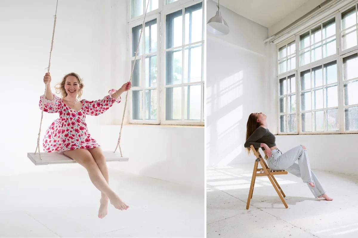 Удивительные детские и семейные фото можно сделать на качелях, которые опускаются при необходимости. Мебель и предметы интерьера можно перемещать в пространстве в соответствии с вашими творческими задачами.