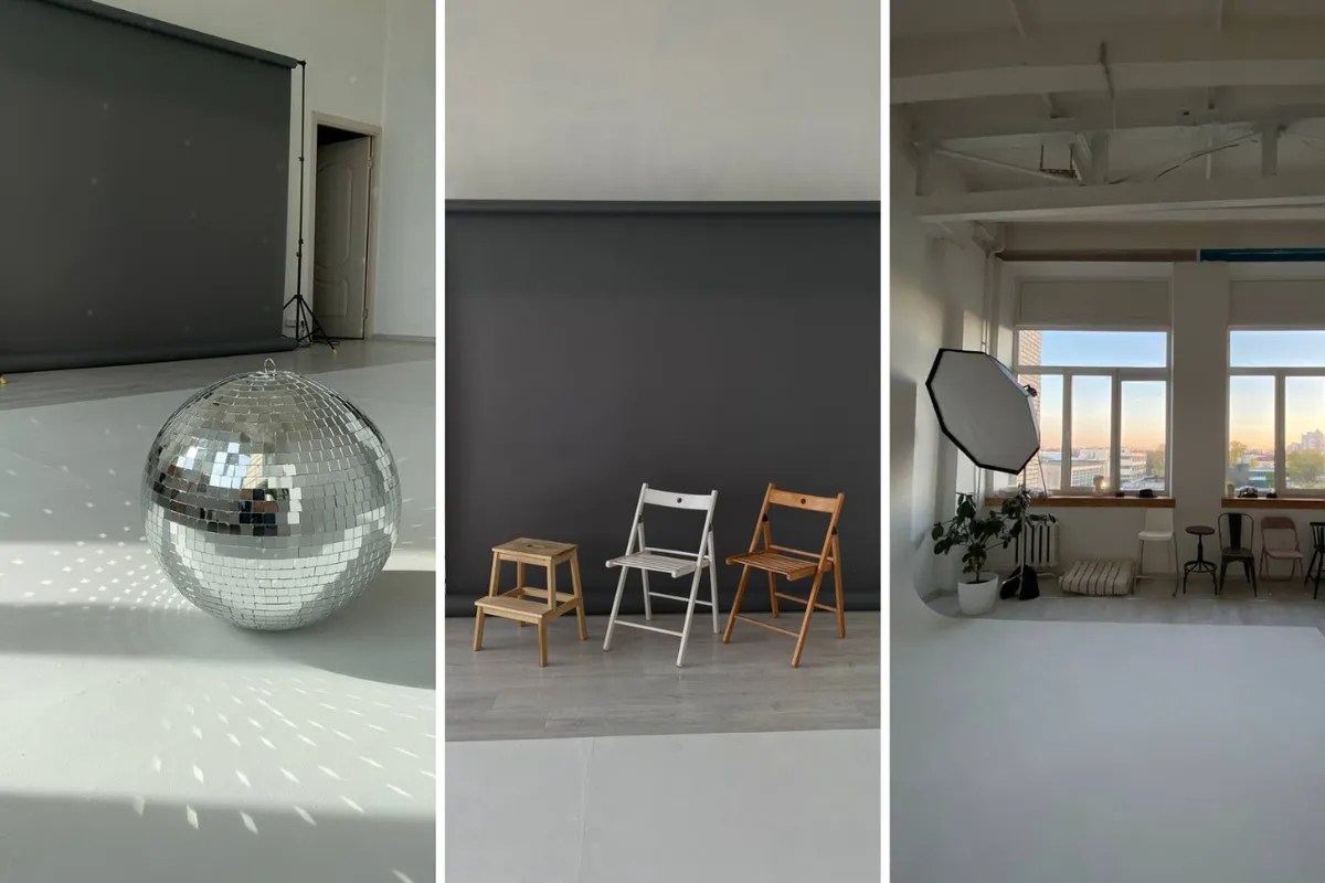 Оба зала оборудованы всем необходимым для проведения качественной фотосессии.