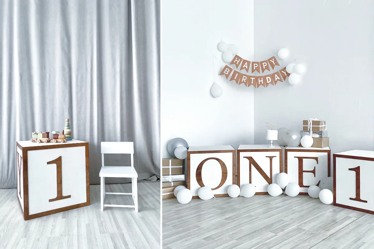 Вне зависимости от сезона, в зале всегда находится детская зона с шарами, кубиками ONE,BABY,BOY, GIRL и фигурками животных.