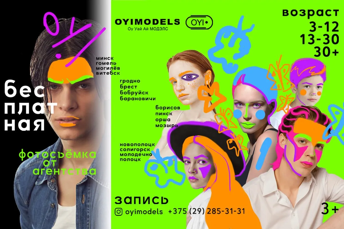 OYIMODELS, основанное в 2019 г., в связи с запуском Юбилейного 5-го модельного учебного сезона сентябрь 2023 - июнь 2024, приглашает на бесплатную фотосъемку во всех городах присутствия в Беларуси (только для новых клиентов).