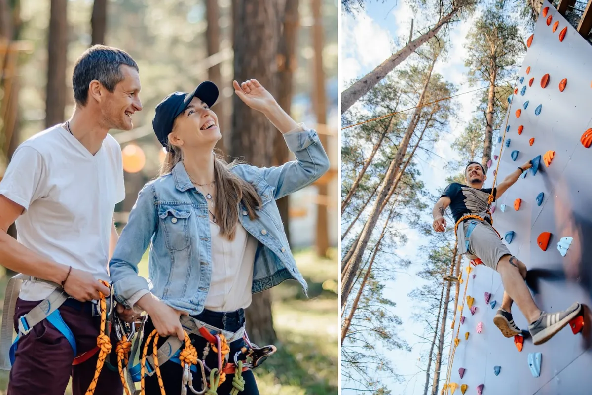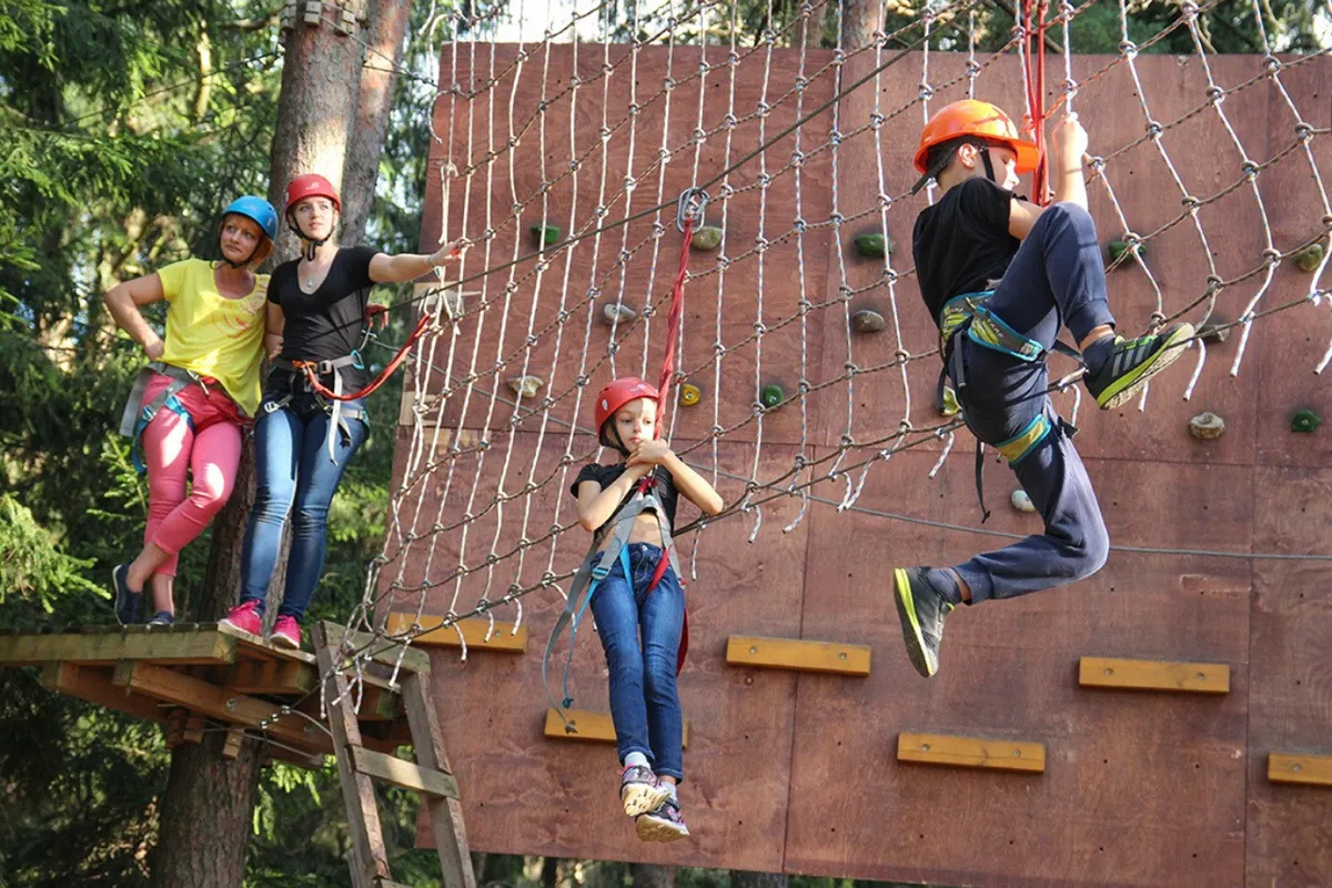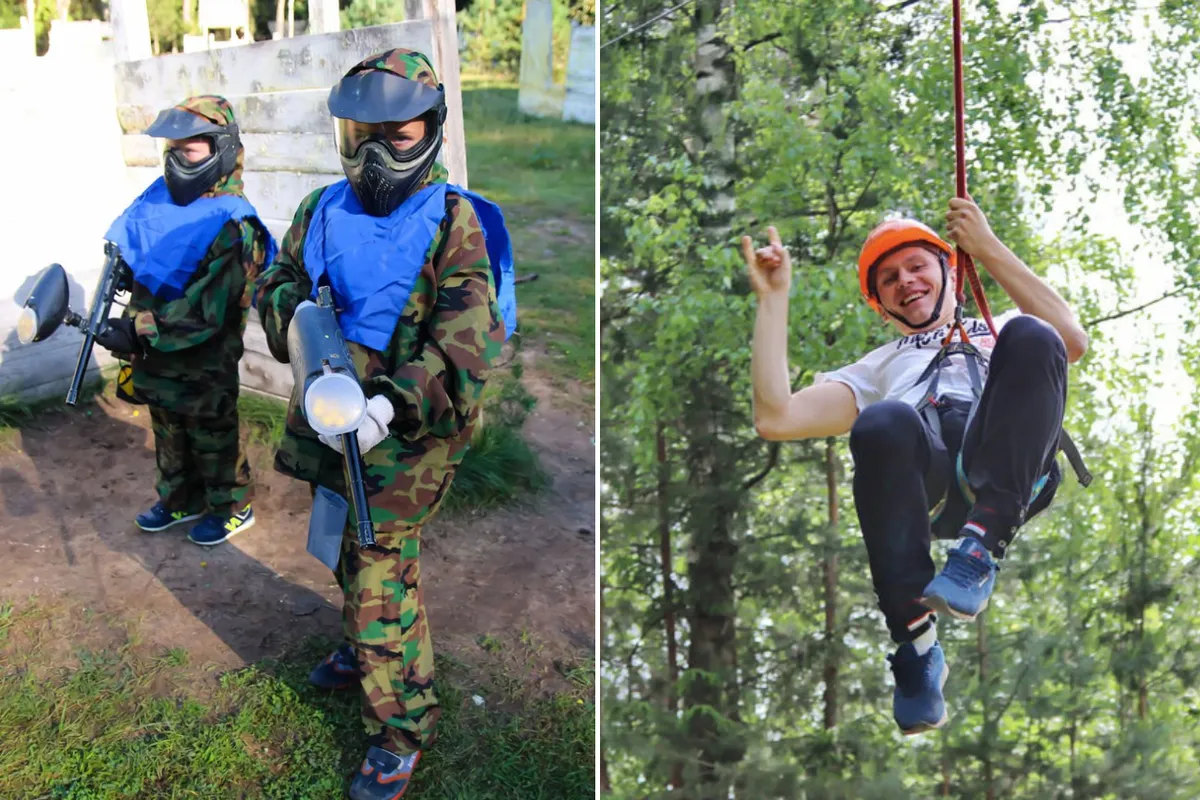 Здесь вы найдете и верёвочный городок, состоящий из верёвочной трассы, скалодрома и троллея, всевозможные квесты, а также лазертаг и пейнтбол.