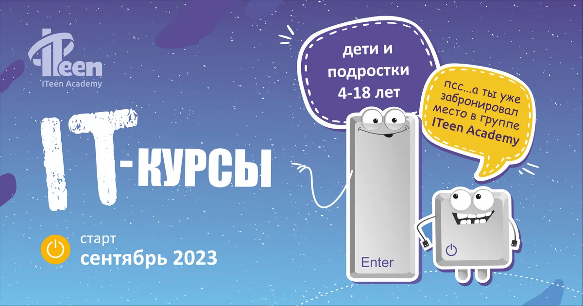 2-3 сентября ITeen Academy приглашает на дни открытых дверей. Дошкольники и ученики 1-11 классов смогут пройти бесплатные мастер-классы, которые помогут определиться с IT-направлением и выбрать подходящий курс.