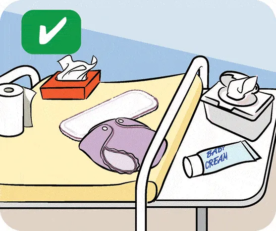 1. Прежде чем сменить одноразовый подгузник, убедитесь, что у вас есть все необходимое: чистая пеленка, детский крем, детские салфетки и немного воды.
