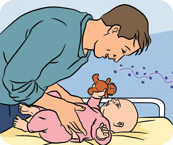 2. Положите ребенка на пеленальный матрасик. Если он капризничает, спойте песню или дайте любимую игрушку. Если вы используете пеленальный столик, всегда держите руки на ребенке, чтобы он не упал.