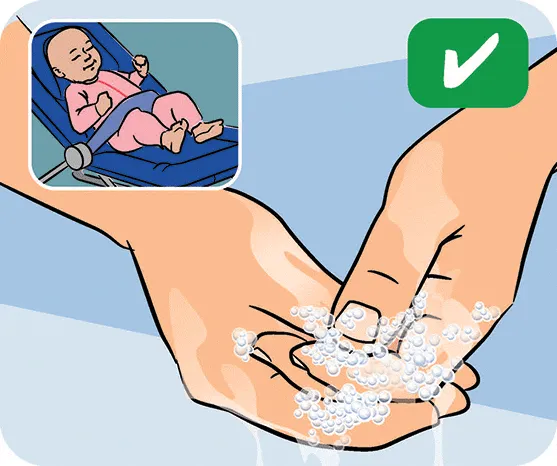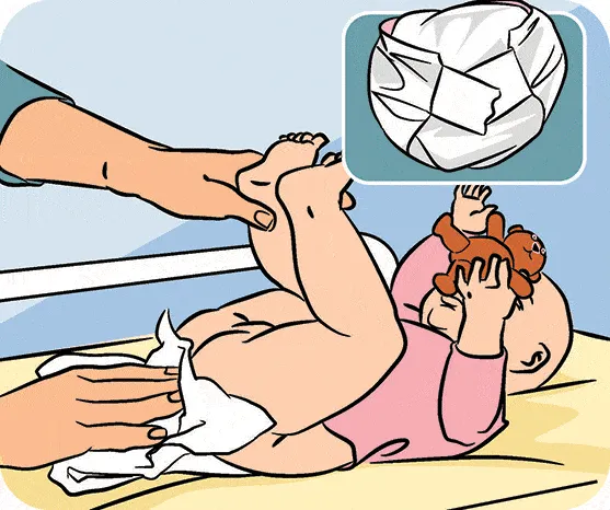 2. Как только оденете ребенка, положите его в кресло для младенца или кроватку. Затем избавьтесь от грязного подгузника и вымойте руки.