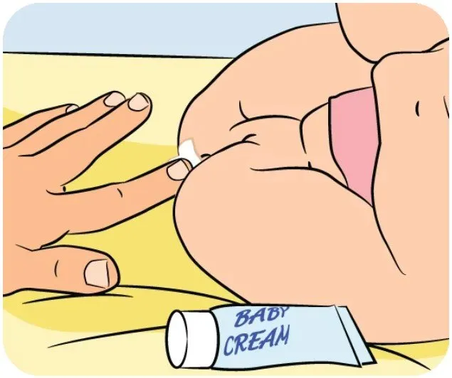 3. Нанесите на кожу детский крем. Это поможет уменьшить опрелости, особенно если у ребенка чувствительная кожа. Использовать тальк не рекомендуется.
