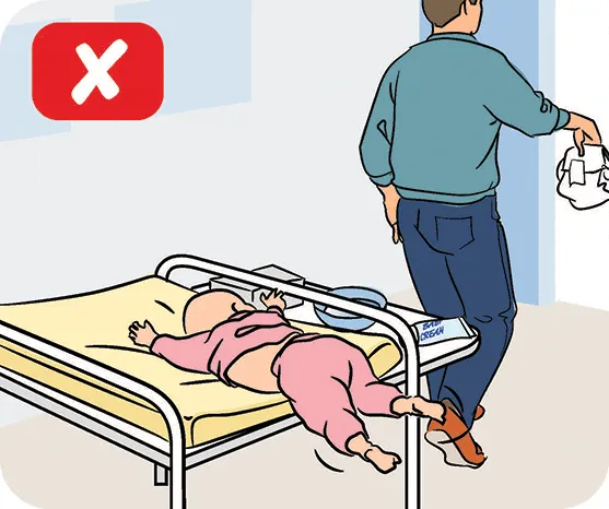 3. Никогда не оставляйте ребенка без присмотра на пеленальном столике. Младенцы могут скатиться в считанные секунды. Если вам нужно отвести взгляд от ребенка, держите его руками.