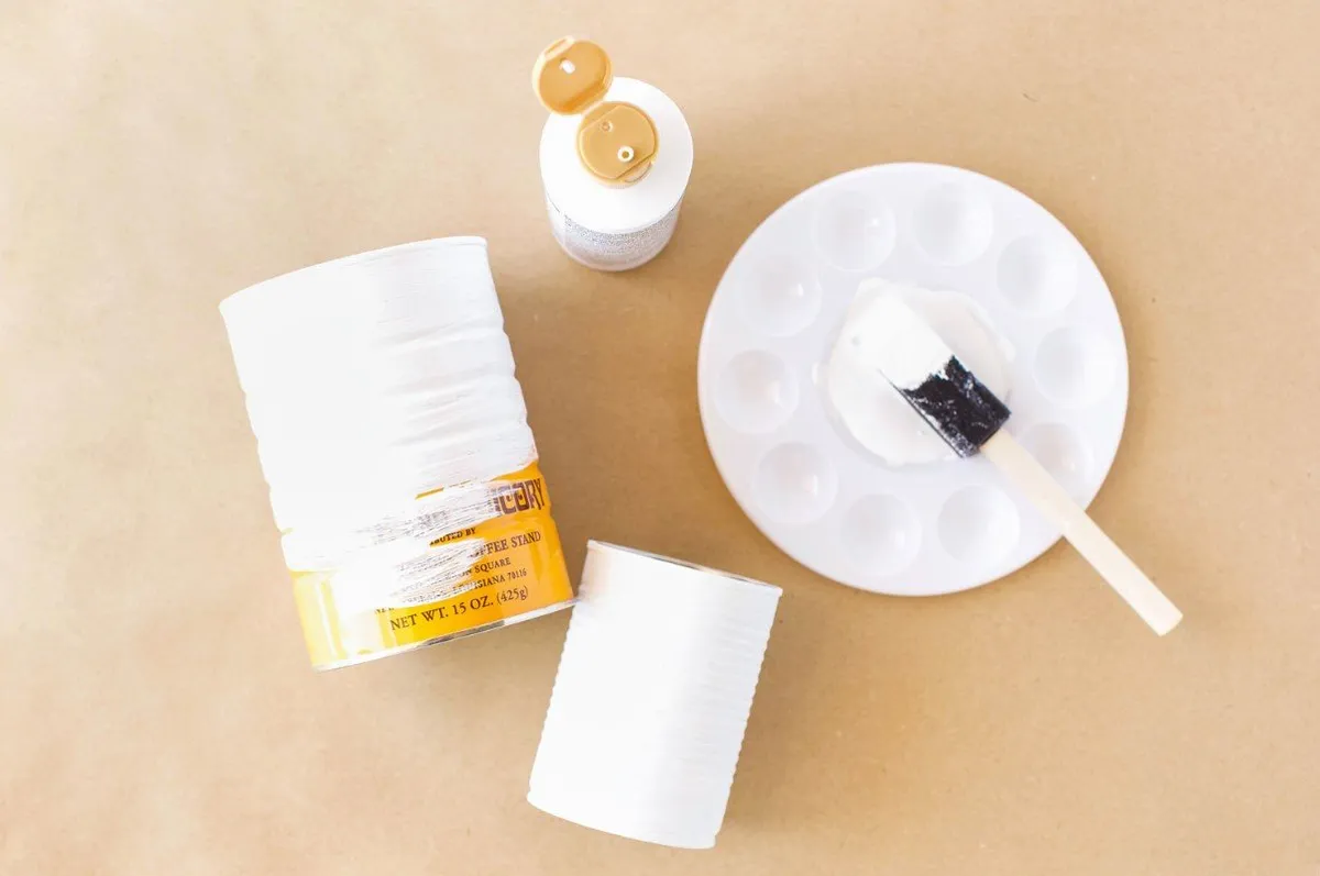 2. Покрасьте банки белой краской. Возможно, понадобится несколько слоев, чтобы цвет выглядел сплошным. Дайте краске полностью высохнуть.