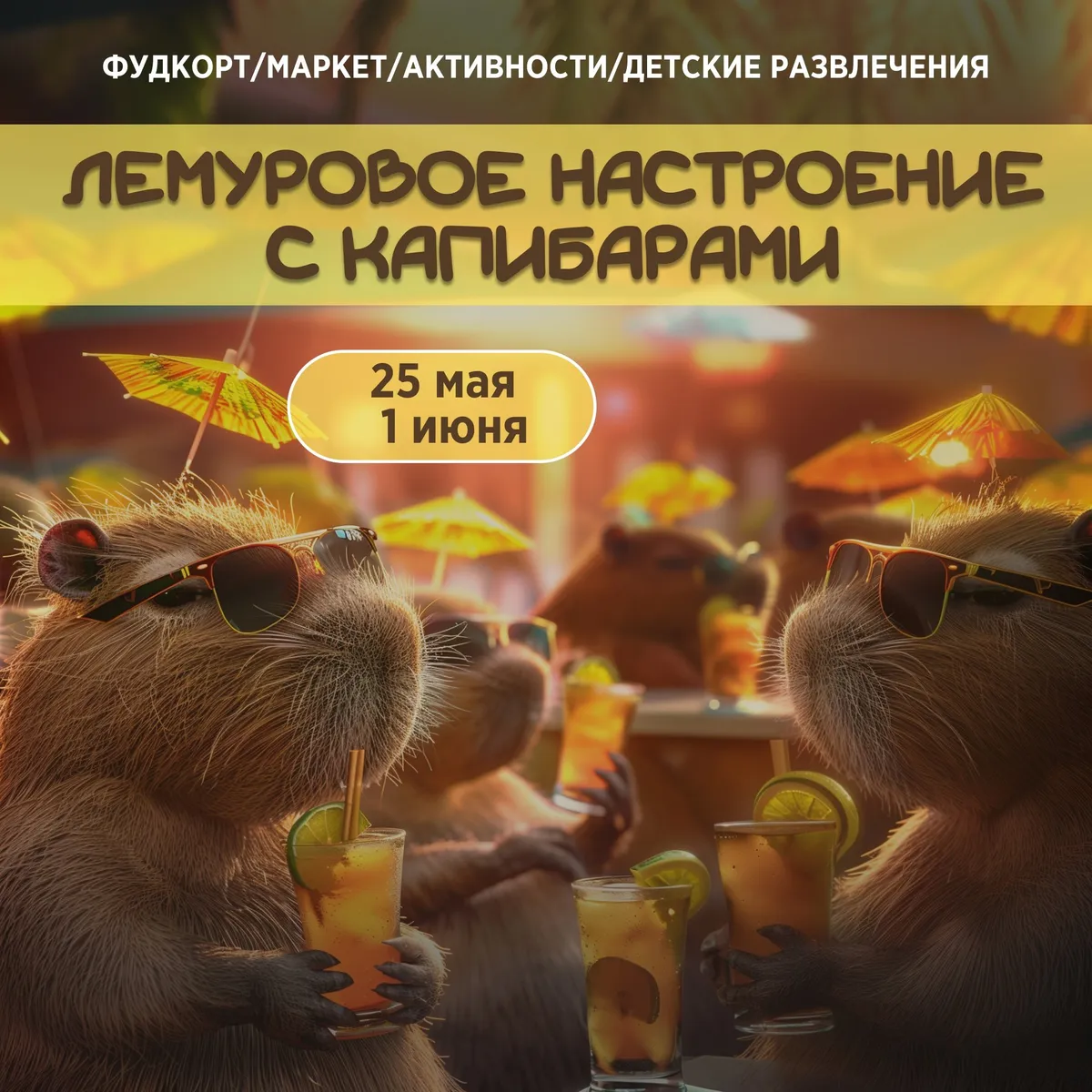 - 11:30 - 13:00 Конкурс рисунков. «Капибара готовится к летнему сезону». Вас ждут призы от парка!
