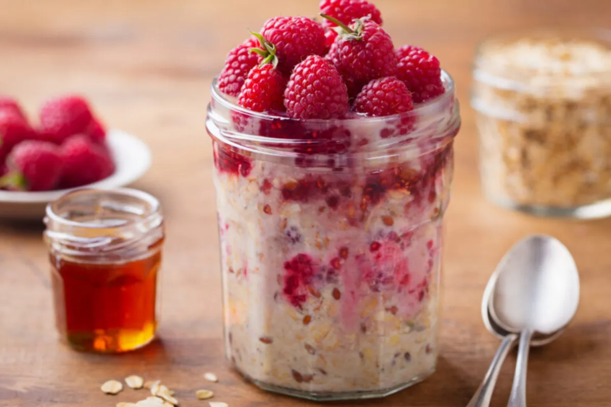 - В стакане слоями распределите малину, овсянку и йогурт.