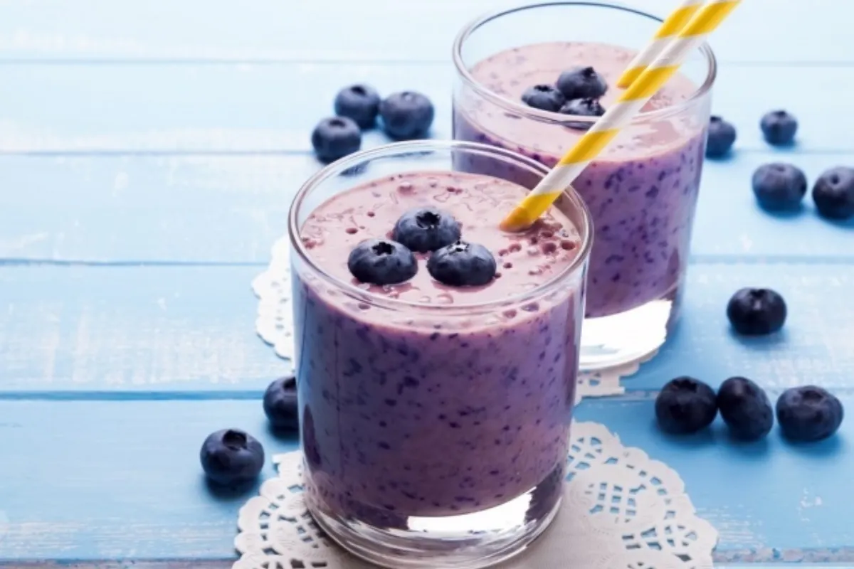 - Смешайте чернику, банан, йогурт и мед в блендере.