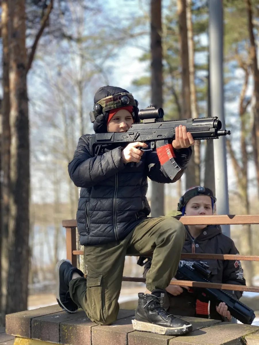 - Лазертаг, стрельба из пневматического ружья