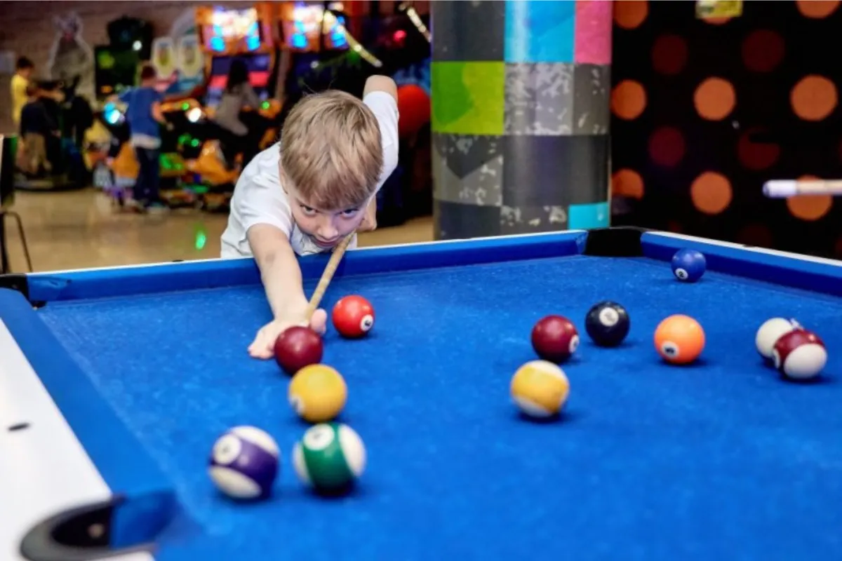 - Игровые аттракционы. Дети не просто играют, а участвуют в турнирах по аэрохоккею, баскетболу, футболу, учатся играть в бильярд. Для всех детей лагеря удвоение суммы на игровой карточке.