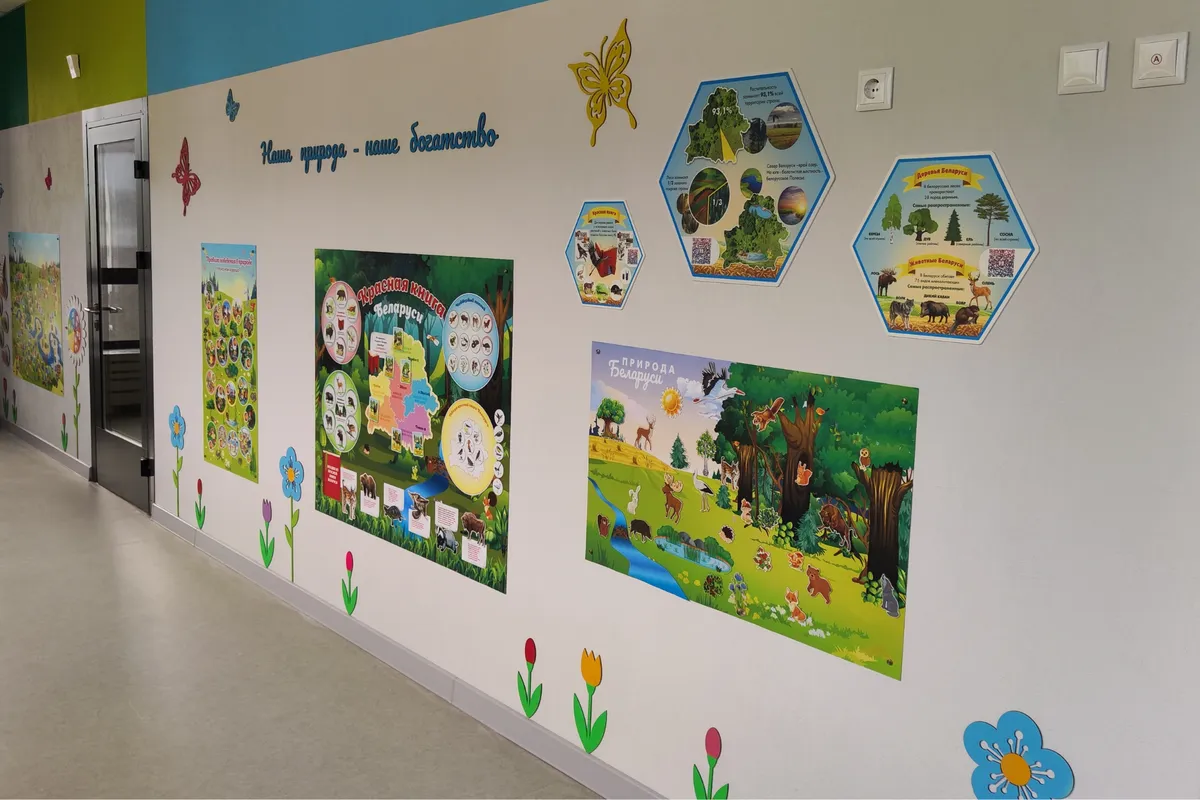 К слову, не только в кабинетах дети могут получать новые знания. В коридорах на стенах также расположены интерактивные уголки и фотовыставки на различные темы - ни один метр не пропадает впустую.