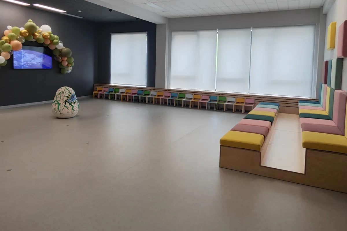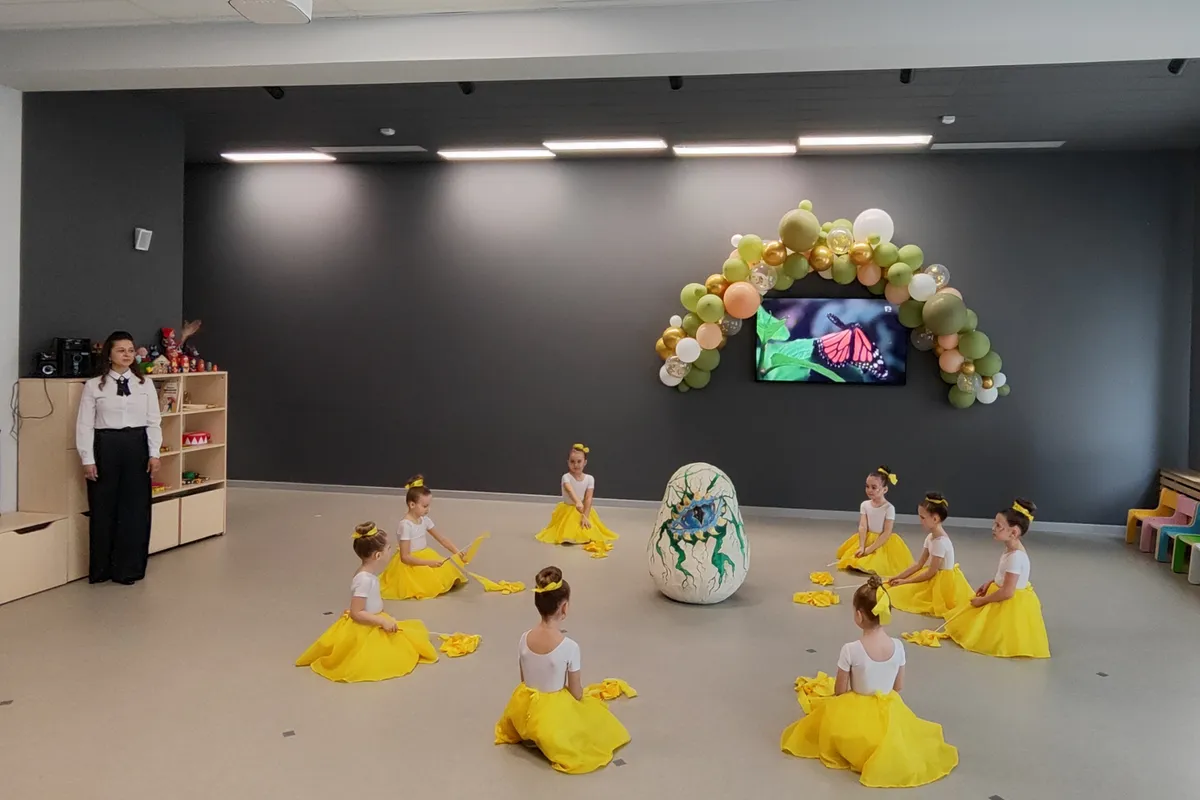 В отдельном крыле здания расположены кабинеты узких специалистов таких, как психолог, дефектолог, а также 2 ресурсных центра: «Юный археолог Дино», который отвечает за экологическое воспитание и «Школа современных профессий «PROF-ДИНО», где дети узнают, кем они могут работать, когда вырастут. Ведь главной особенностью нового детсада выступает профориентация. Детей с раннего возраста будут знакомить с популярными профессиями. Причем делать это будут в игровой форме, чтобы увлечь и заинтересовать. Ребята смогут почувствовать себя археологом, архитектором, врачом, спасателем, поваром и учителем. Всё это поможет им найти свой путь в будущем.
