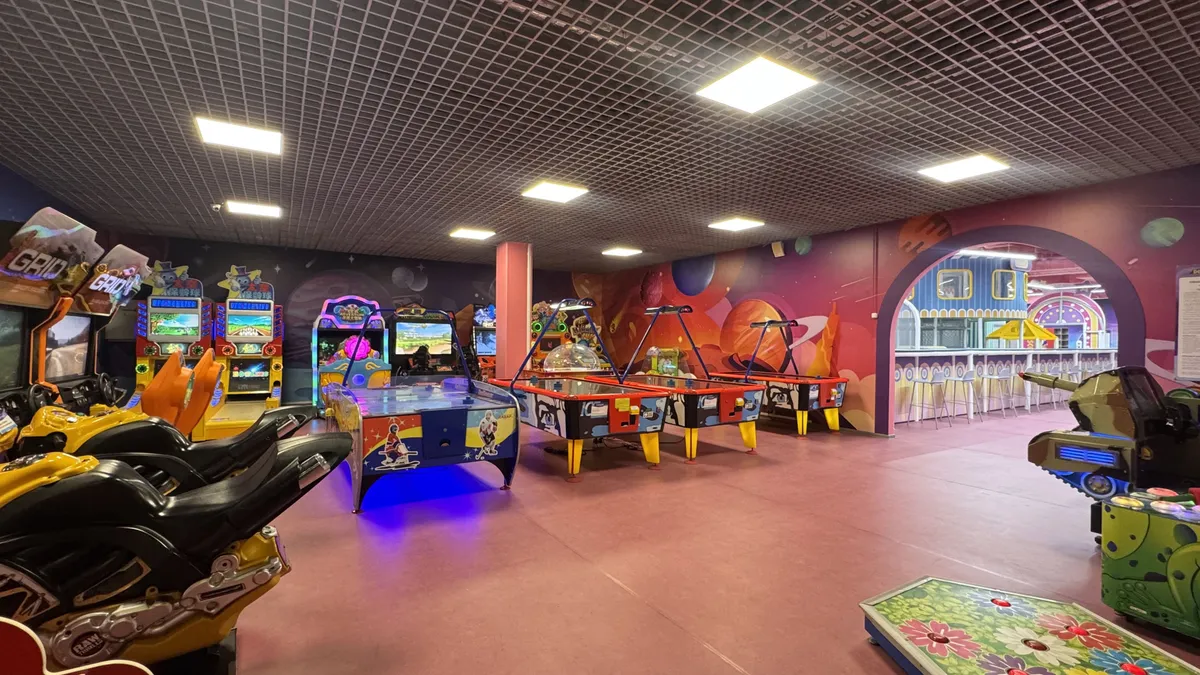 Если ребенок устал бегать, самое время переключиться на игры. В центре установлено 38 игровых автоматов и симуляторов. Это развлечение подойдет для всех возрастов — от малышей, которые любят нажимать на яркие кнопки, до школьников, желающих проверить свою реакцию.