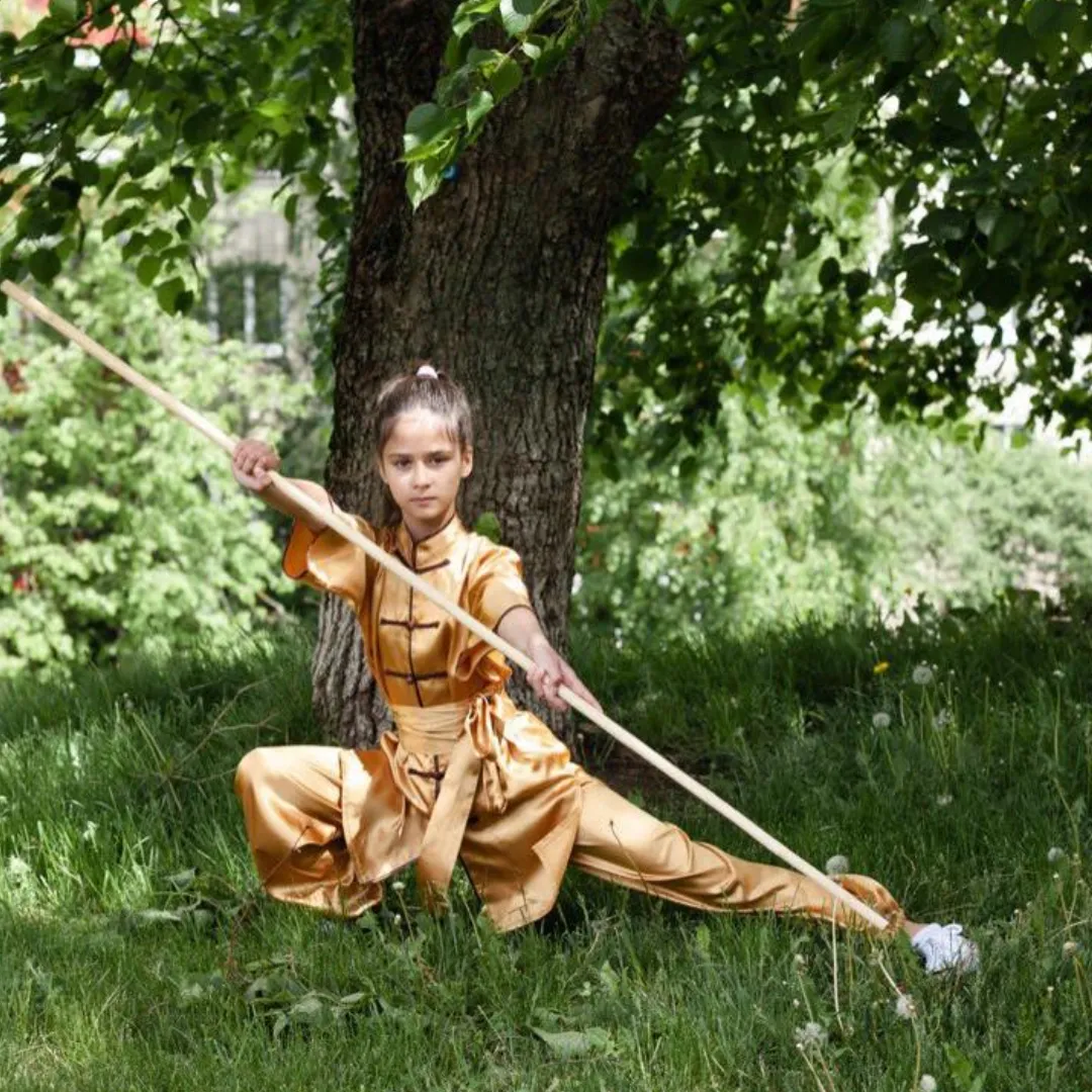 Боевое искусство ушу включает в себя гимнастику, акробатику, растяжку, традиционную технику Таолу, работу с напарником Юнфа и работу с традиционным китайским оружием.