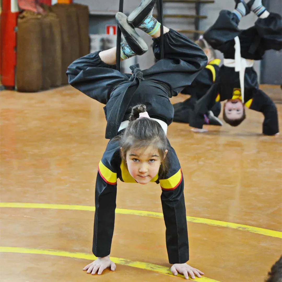 - Физическое развитие: во время тренировок ушу укрепляются все мышцы тела ребенка. Дети занимаются растяжкой, акробатикой, гимнастикой и другими упражнениями на укрепление организма.