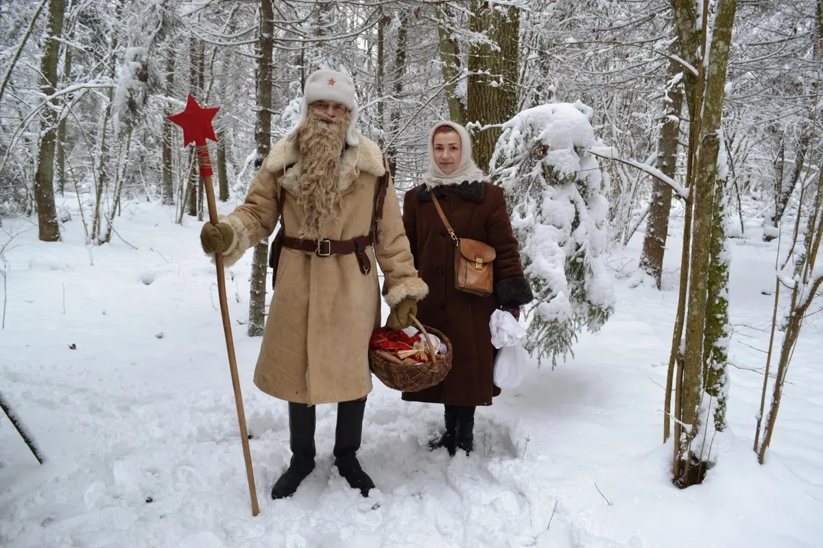 Здесь нет привычного блеска и автоматизации. Партизанский Дед Мороз — это собирательный образ тех суровых лет. Он носит бороду из пакли, шапку-ушанку, валенки и тулуп, подпоясанный армейской портупеей, а в руках держит посох, увенчанный красной звездой. Его задача — не просто развлечь, а напомнить о ценности мирной жизни и о том, как в тяжелейших условиях лесного лагеря люди находили силы праздновать и верить в лучшее.