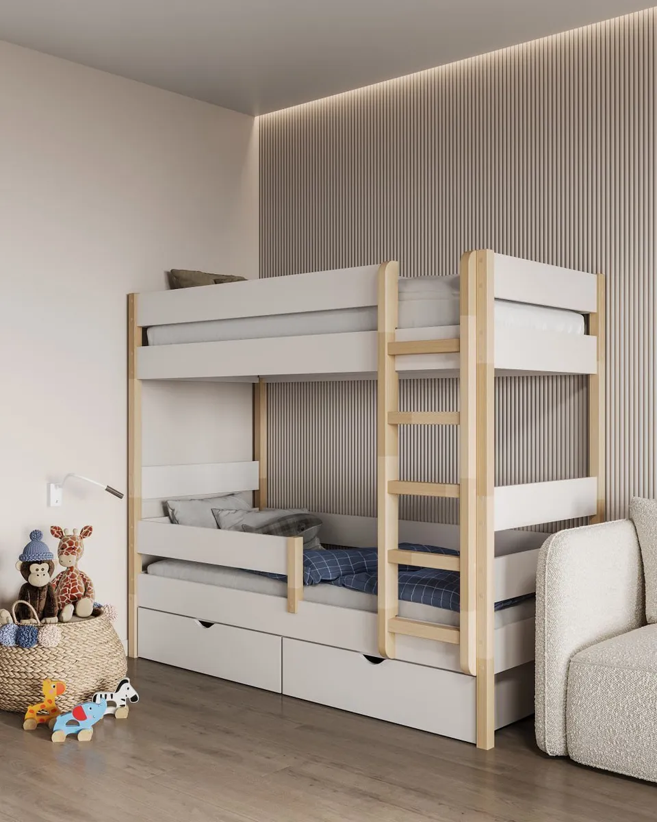 - Двухъярусные кровати: Топ-выбор для семей с двумя детьми. Экономия места без ущерба для надежности.
