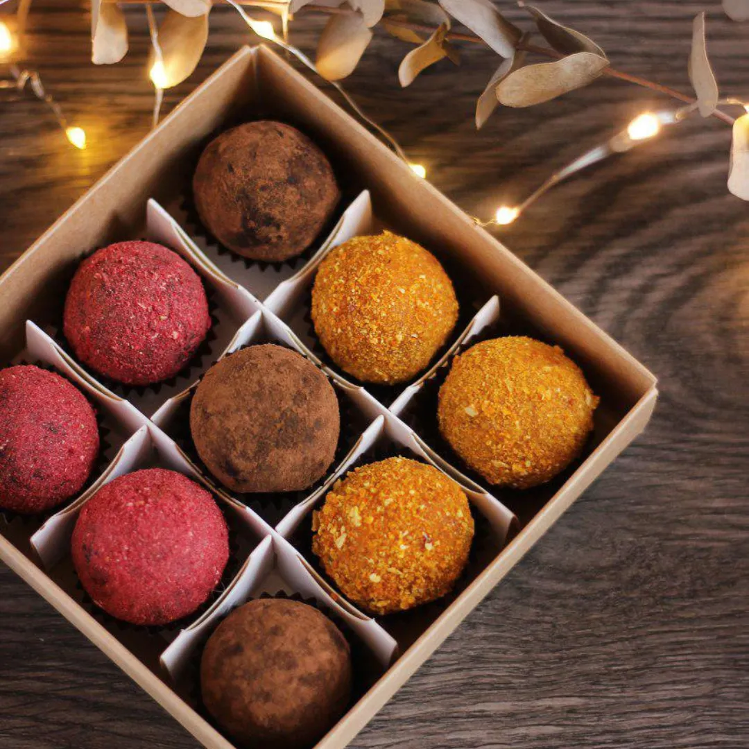 Кроме тортов, в Yellow SLON можно заказать веганские конфеты и кейки, которые также могут стать прекрасным дополнением к вашему новогоднему столу.