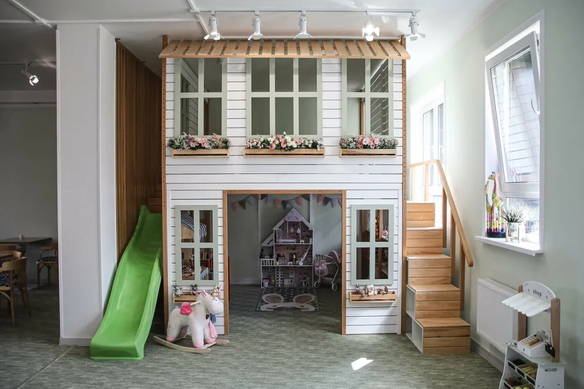 “Лютики” оснащены всем необходимым, чтобы каждый ребенок чувствовал себя счастливым и занятым. Игровая зона включает множество игрушек, закрытую детскую площадку и отдельную фото-зону для праздников. Это место, где дети могут безопасно играть, пока родители находятся рядом.