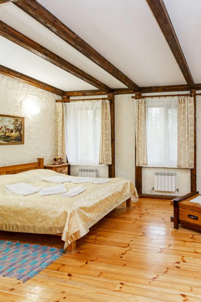 Усадьба «Бивак» — это не просто место для отдыха. Это уникальный уголок, где каждый элемент интерьера, вдохновленный гусарскими временами, погружает вас в атмосферу исторических событий. Роскошные комнаты, оформленные в теплых пастельных оттенках, с изысканными коваными деталями и мебелью из лучших пород древесины, создают идеальные условия для семейного отдыха и встреч с друзьями. С уютным камином в холле и живописными видами из окон, вы сможете насладиться каждой минутой пребывания здесь.