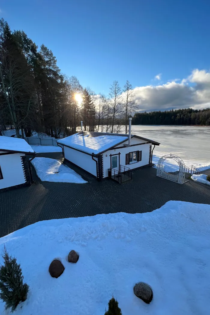Ну и какой же загородный отдых без бани? На острове их две – с прямым выходом к озеру: из жаркой парилки можно сразу окунуться в свежую волну. А еще на берегу озера, на свежем воздухе установлена купель, париться в которой можно круглый год!