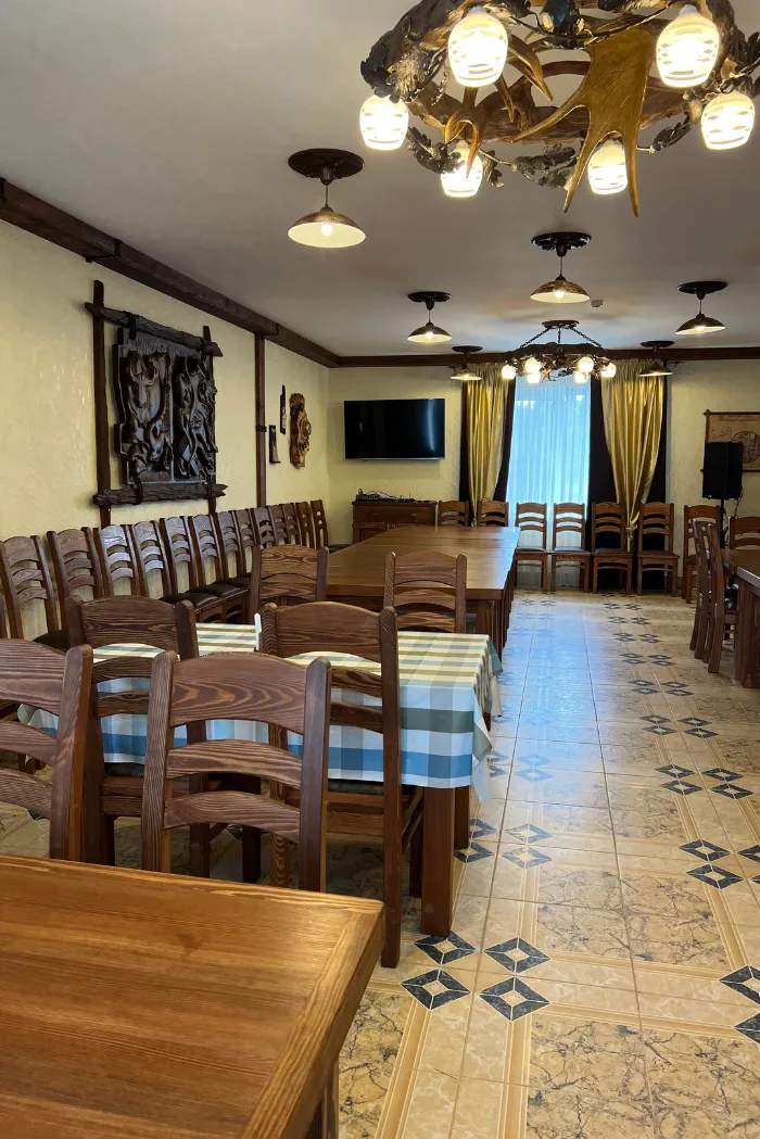 Мы заботимся о вашем комфорте, поэтому на базе предусмотрено трехразовое питание. Каждый наш гость сможет попробовать вкуснейшие блюда из дичи, белорусскую национальную кухню и напитки собственного производства.