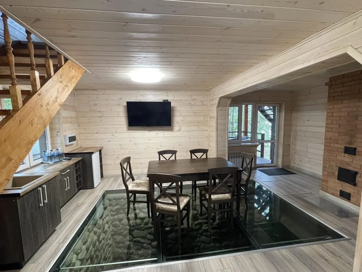 Для гостей подготовлены современные коттеджи из натурального дерева, оборудованные всем необходимым для комфортного проживания.