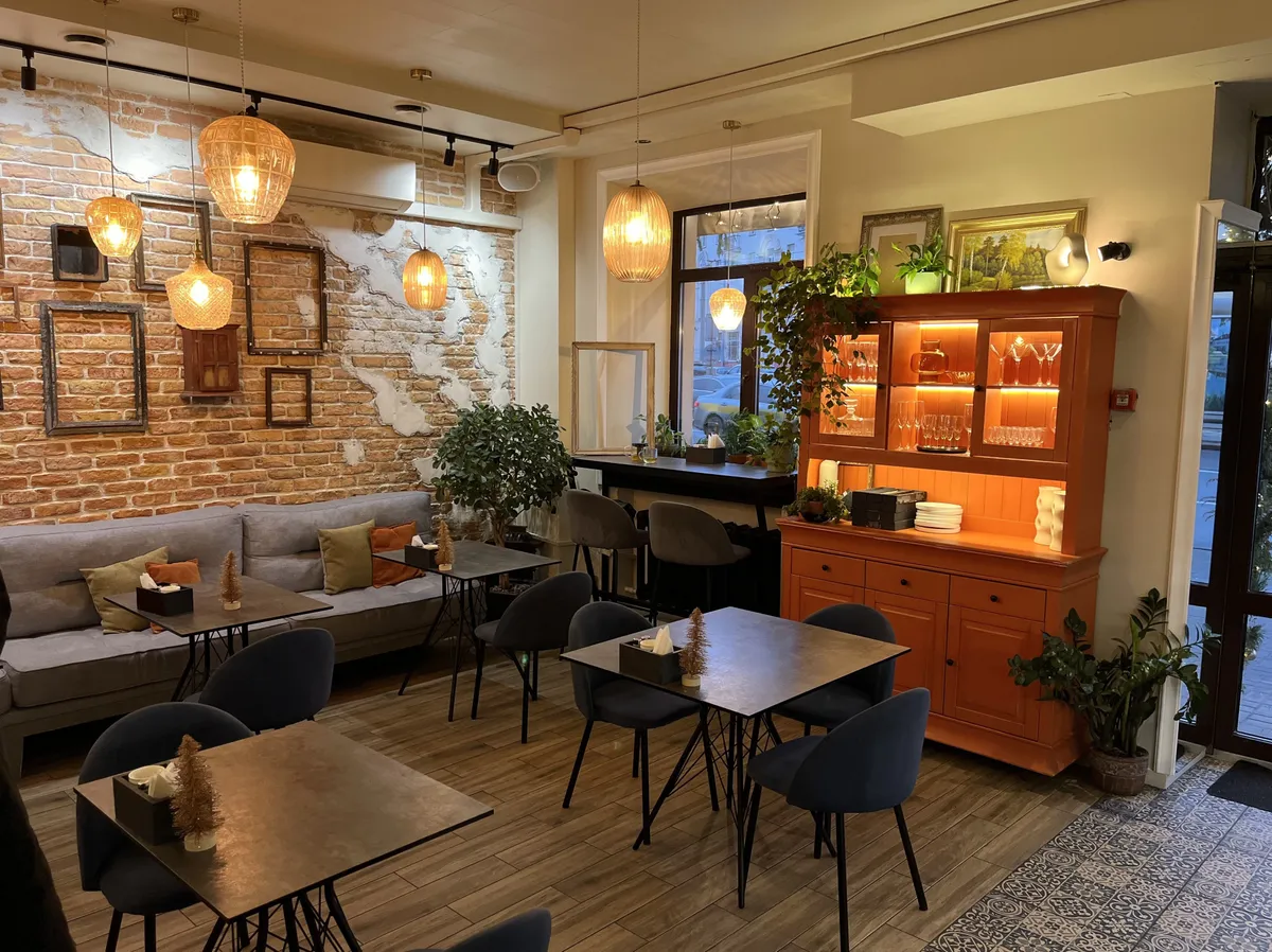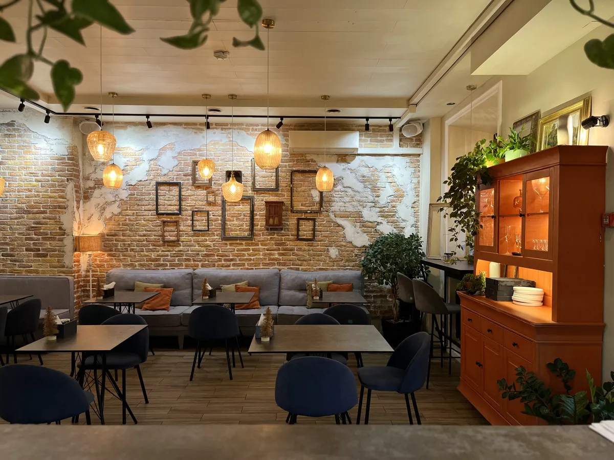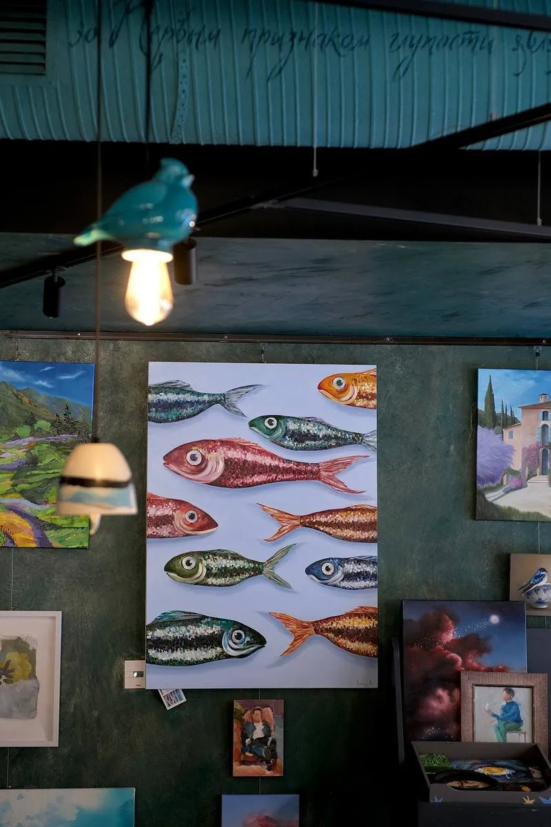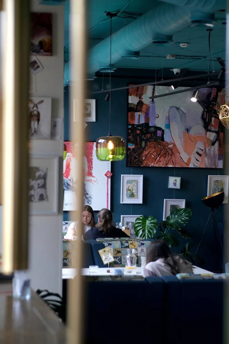 Интерьер — не просто уютный, а с культурной изюминкой: стены украшают работы белорусских художников, так что завтрак легко превращается в импровизированную галерею. Есть уголок для малышей с игрушками и раскрасками, а ещё — тёплое "да" вашим пушистым (или хвостатым) спутникам.