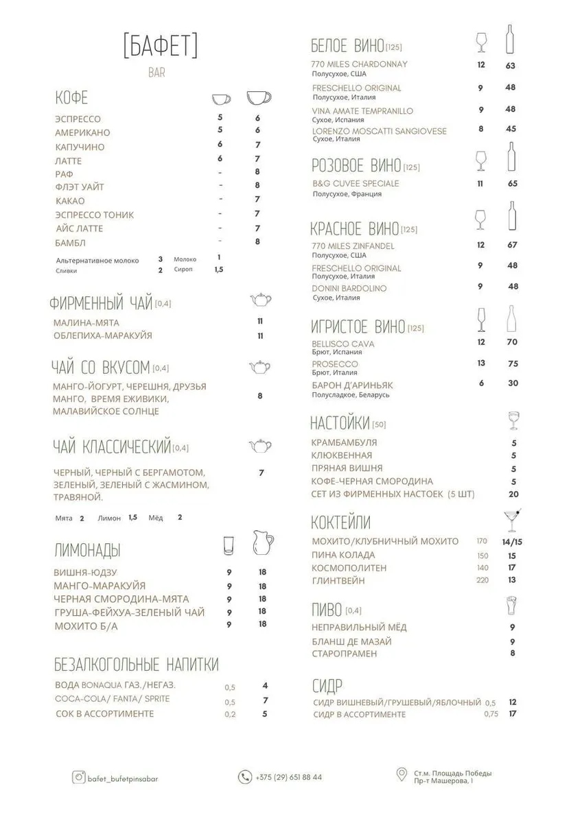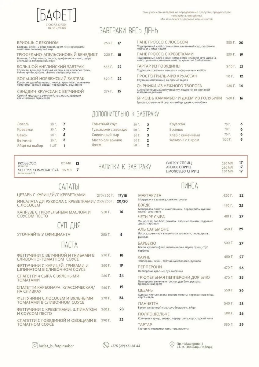В Минске есть уютное место, куда хочется заглянуть и утром, и днём, и вечером — и каждый раз оно встречает по-домашнему тепло. [БАФЕТ] — это не просто пинса-бар, а гастрономическая передышка в ритме большого города: сытный завтрак, быстрый обед, уютный ужин и, конечно, витрина с десертами, от которой сложно отвести взгляд.