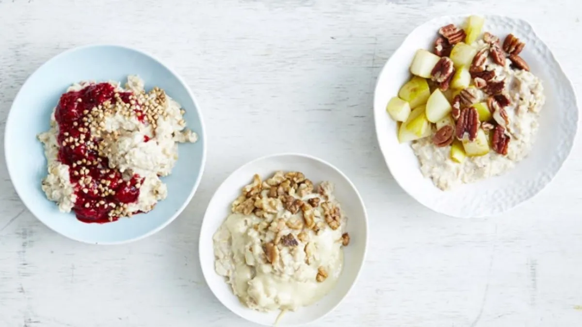 Самый простой вариант на завтрак - каша! Просто используйте овсяные хлопья, молоко и щепотку корицы. Либо дополните кашу полезными топпингами: фруктами, ягодами, орехами, джемом.