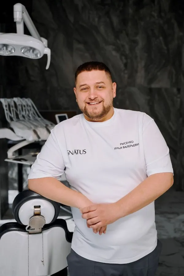 - Илья Валерьевич Рысенко — врач-стоматолог-хирург. Надежный специалист, который уверенно и профессионально проводит хирургические вмешательства, грамотно подготавливая костную ткань и десну к идеальной установке имплантов.