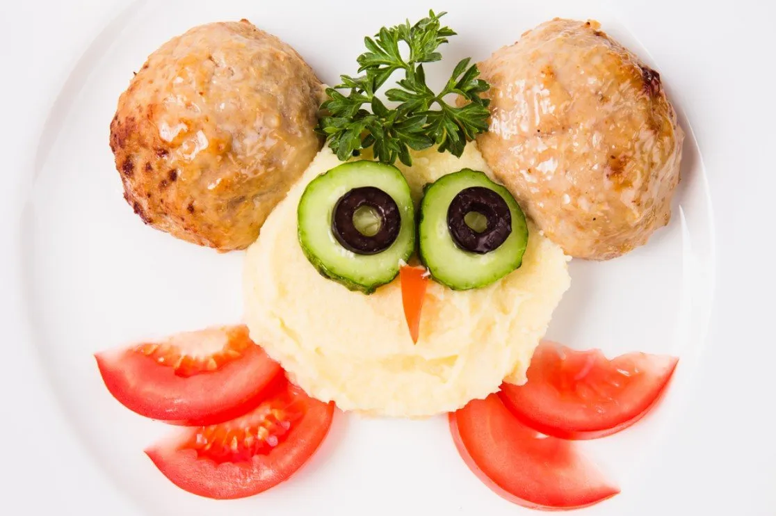 1. Представьте, что картофельное пюре - это «картофельный клей», который склеивает другие овощи. Вы можете сами украсить его овощами, либо дети могут окунуть ложку с пюре в другие овощи, такие как горох, кукуруза и нарезанная кубиками морковь.