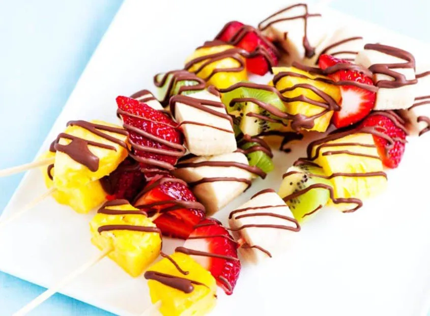 2. В особых случаях, когда даете детям сладости, старайтесь сочетать их со здоровой пищей. Например, добавляйте на шпажку к машмеллоу фрукты или полейте фрукты шоколадом, а не предлагайте сладости самостоятельно.