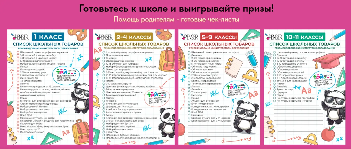 Подготовка к школе обычно начинается с составления списка необходимых товаров. Мы всегда старались учесть все мелочи, чтобы ничего не забыть. Как же мы были приятно удивлены, когда зайдя на сайт "Три цены", мы увидели уже готовые списки необходимых товаров к школе для разных классов, одобренных Министерством образования! Мамы поймут, какое это счастье)