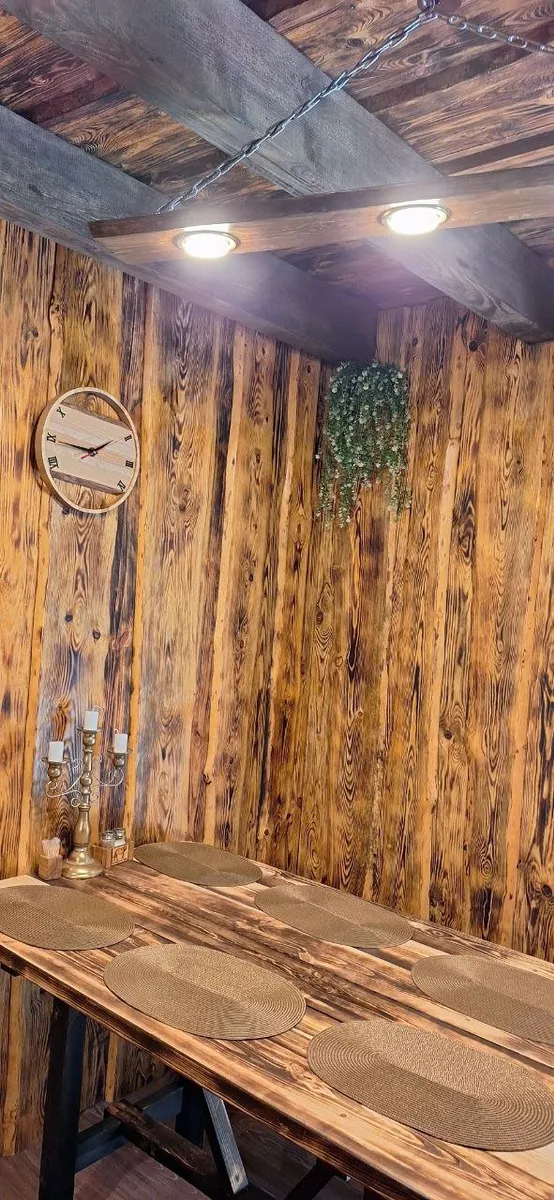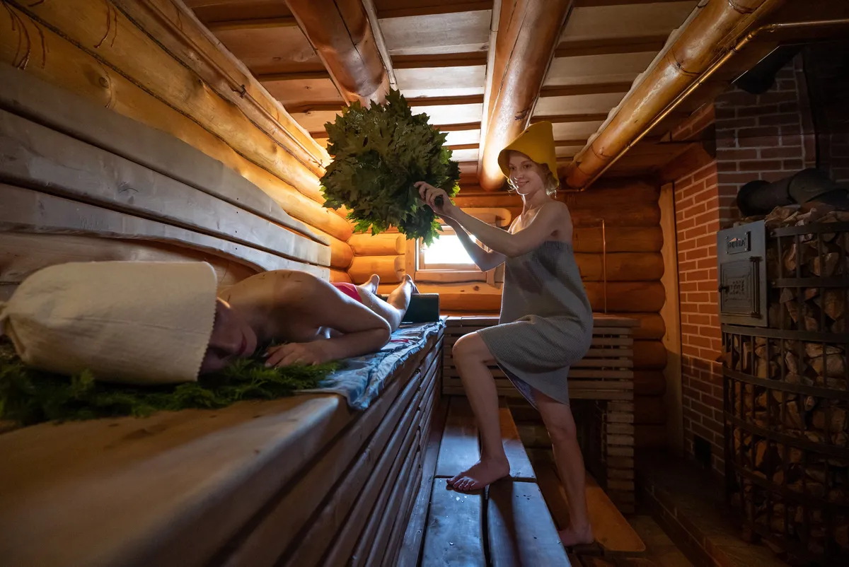 И обязательно сходите в баню. Здесь она на дровах, с бассейном и комнатой отдыха. А если вы живете в коттедже или отеле, вам дадут скидку 10% на ресторан и баню.