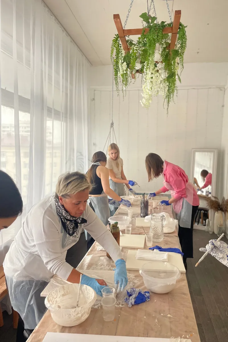 Этот мастер-класс проходит в два этапа: в первый день вы создаёте рельефную композицию из ткани и гипса, а во второй — по желанию добавляете цвет, поталь или оставляете в минималистичном белом варианте. Результат — как из дизайнерского шоурума.Гипсовые изделия — стильный декор своими руками