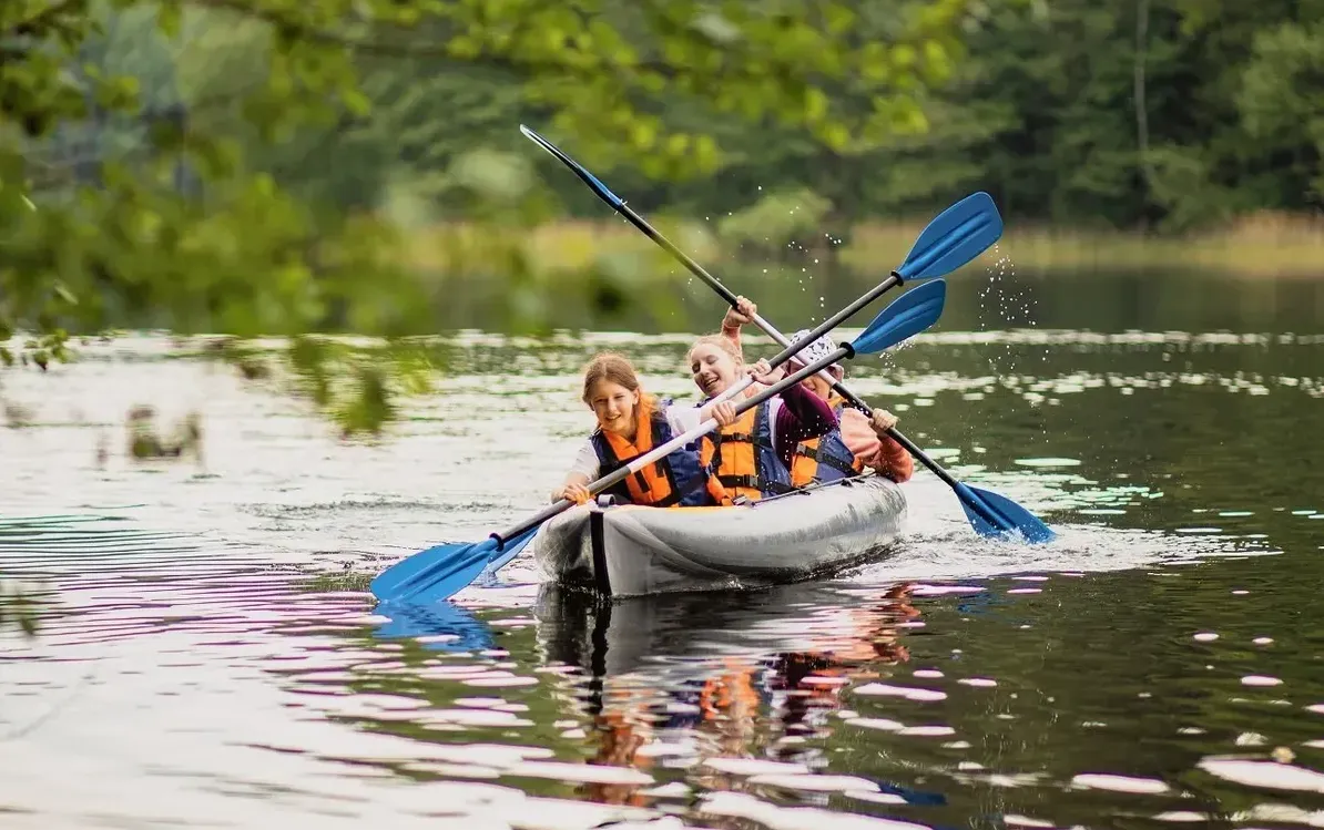 Активности на воде и суше: байдарки, SUP-борды, лазертаг и мобильный скалодром прямо на территории.
