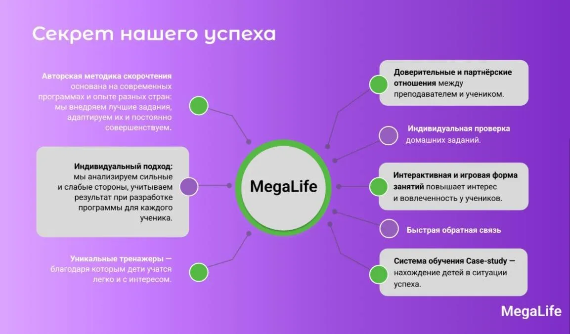 В «Мегалайф» стремятся не только к тому, чтобы дети могли читать и писать, но и к тому, чтобы они своевременно ориентировались в различных ситуациях, прогнозировали последствия своих действий и комфортно контактировали с окружающими.