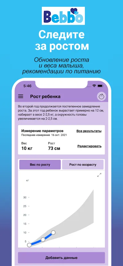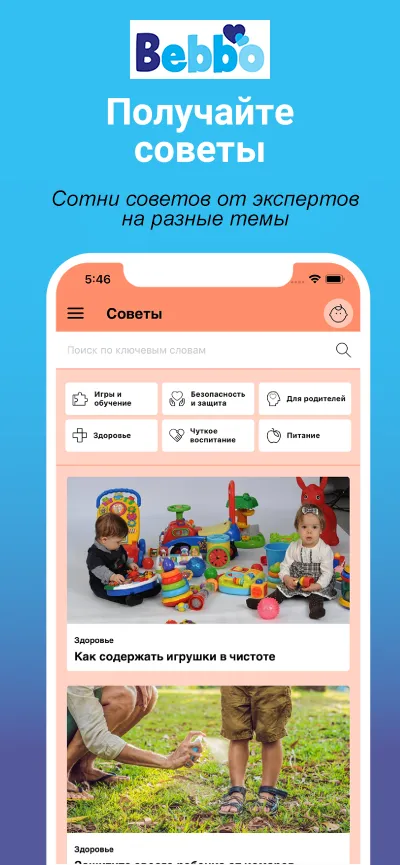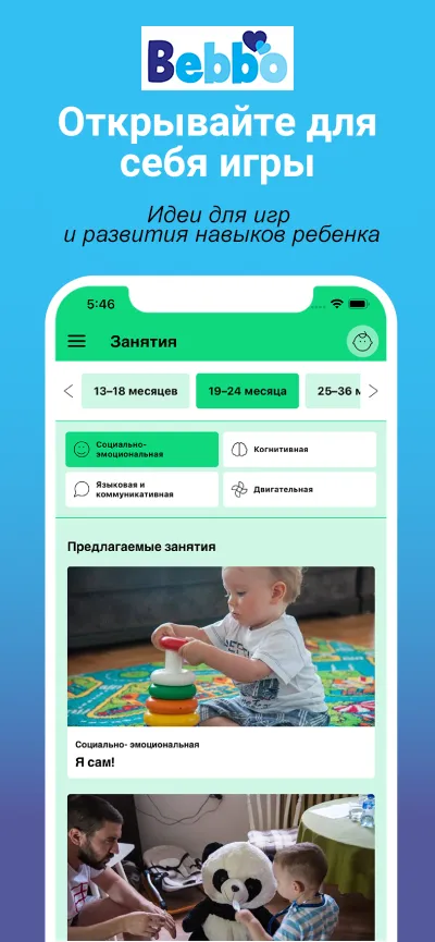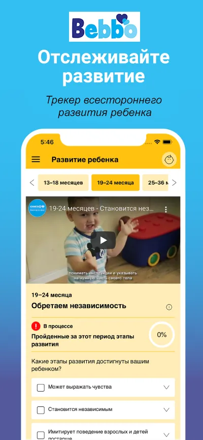 С помощью Bebbo вы сможете ежедневно следить за прогрессом ребенка, стимулировать развитие в процессе игры, получать подсказки и рекомендации от экспертов, вести учет медосмотров и прививок, получать информацию о том, как улучшить языковые, моторные и социальные навыки ребенка. И очень важно – пользоваться советами насчет заботы о своем собственном благополучии.